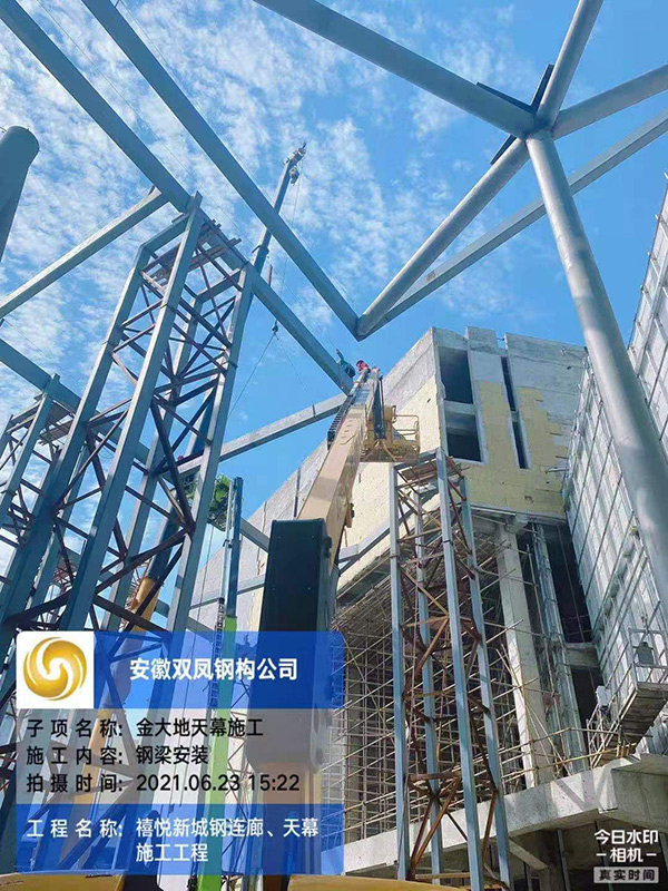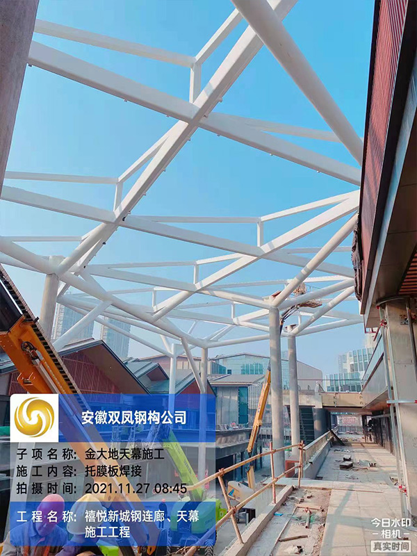 本项目为金大地地产工程,本公司承建钢连廊及天幕工程,工程结构复杂,难度大,对施工有很专业的技术要求。