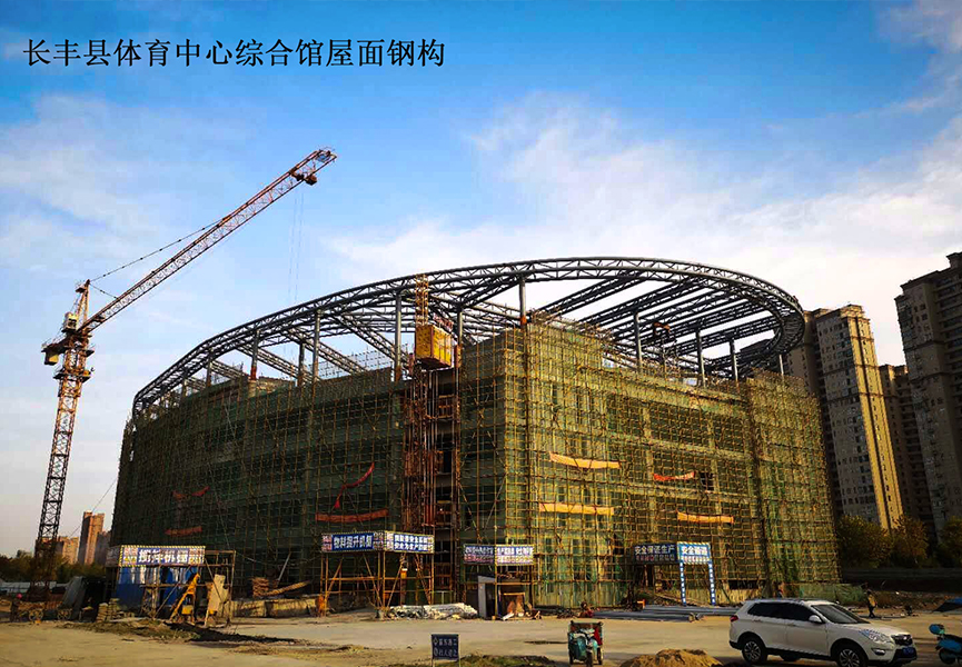 承包范围:体育中心综合馆屋顶钢结构及体育公园游泳馆屋面网架工程制作及安装;其中综合馆屋顶钢桁架跨度64M.