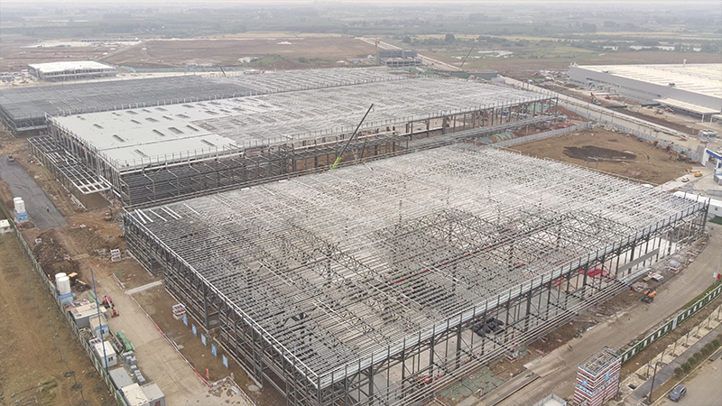 本工程为新桥智能电动汽车零部件产业园一期(北区)一标总承包项目,工程建设地点位于合肥市经开区新桥科技创新示范区龙嘉路与白云路交口。工程建筑面积约为11万平米。项目包含1号厂房、2号厂房、3号厂房、综合站房、丙类库、危废库、门卫、连廊、过街连廊1、过街连廊2。