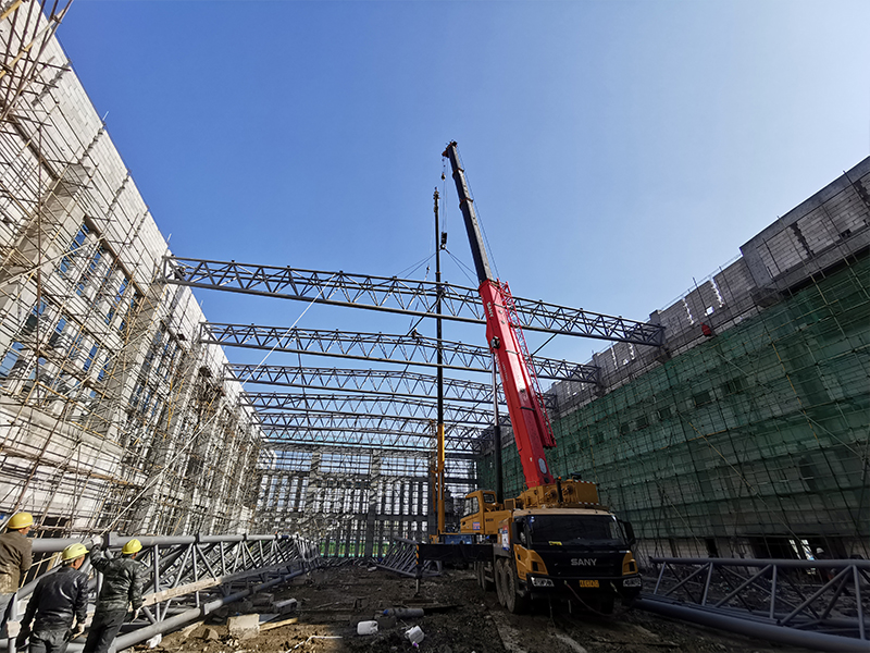 分包工程范围与内容:主教学楼钢连廊、大学生活动中心篮球馆、羽毛球馆钢结构屋面制作安装工程。
